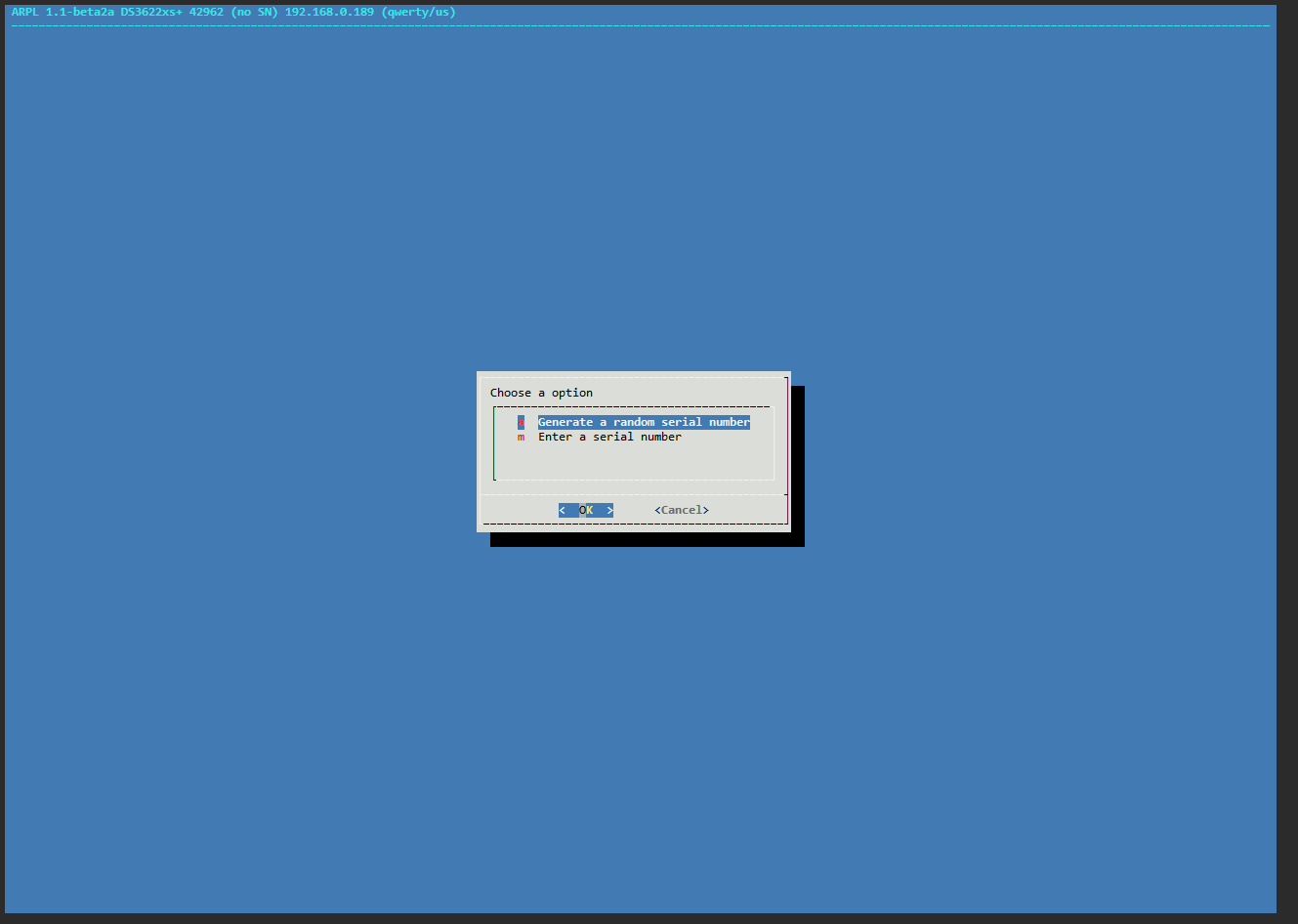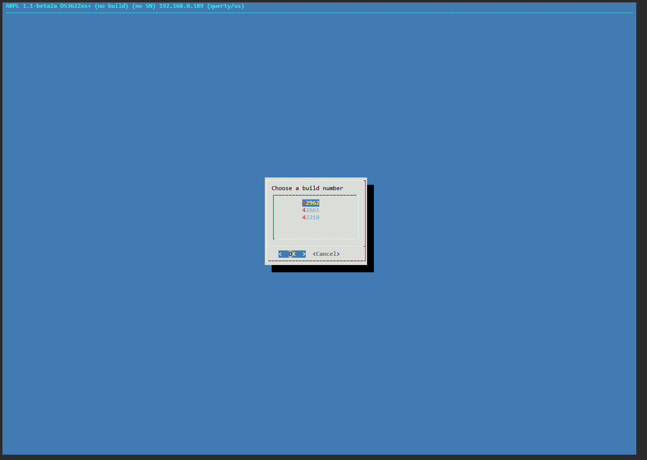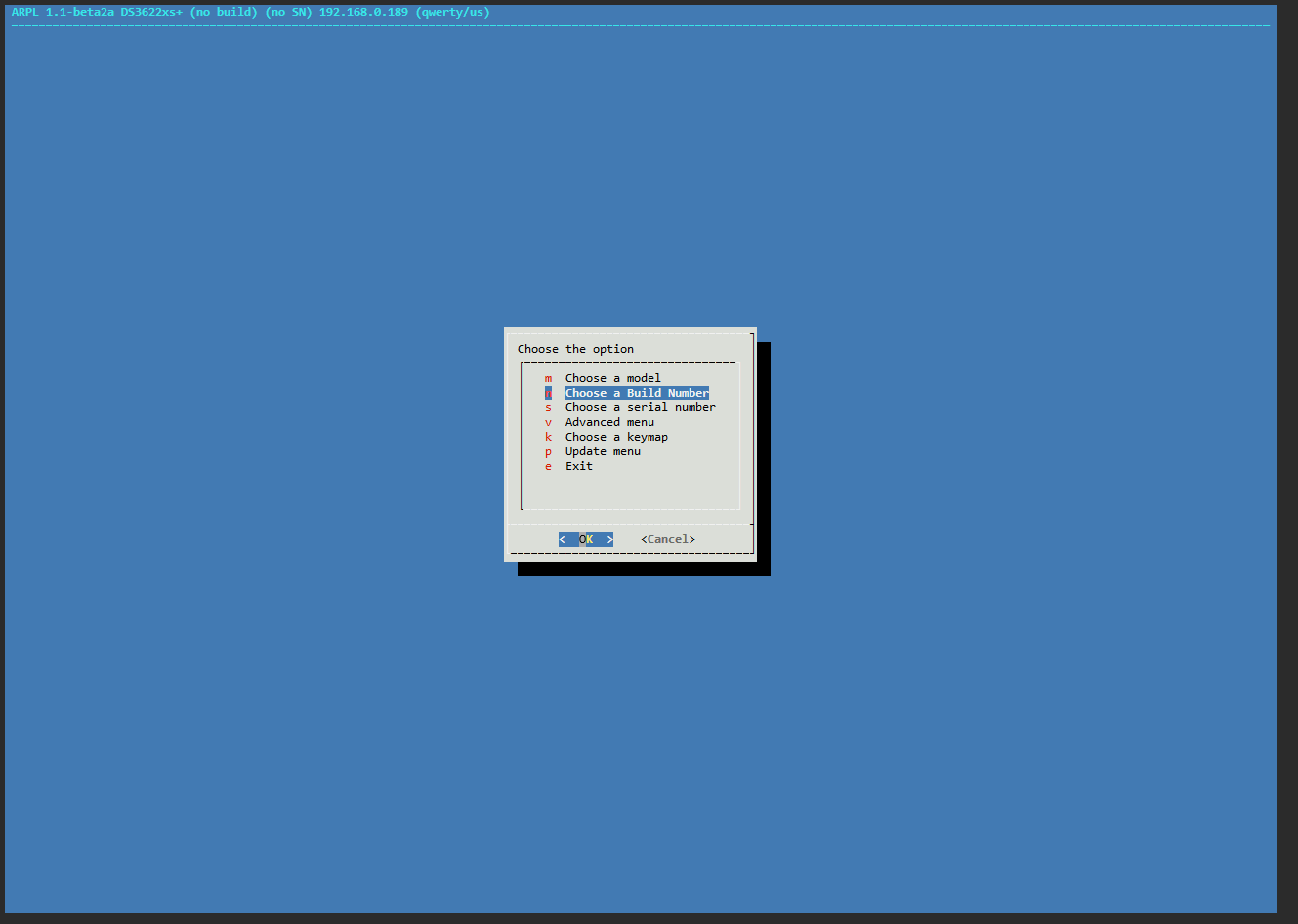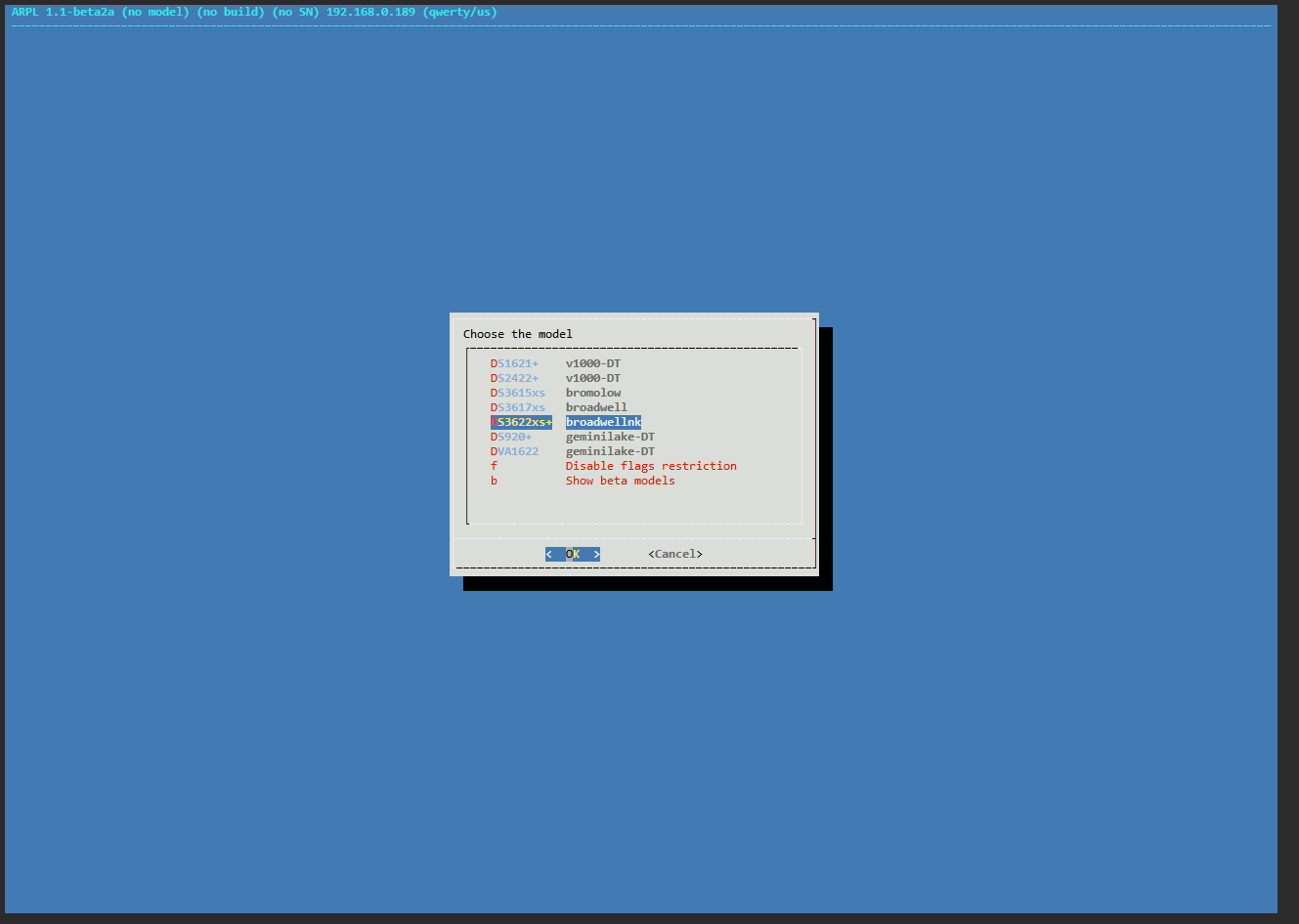 Tuỳ vào cấu hình máy mà mục model sẽ hiện ra các model tương thích. Mình chọn DS3622xs+ (broadwellnk), theo hướng dẫn chọn model ở đây: https://xpenology.com/forum/topic/61634-dsm-7x-loaders-and-platforms/. Bấm Enter để tiếp tục