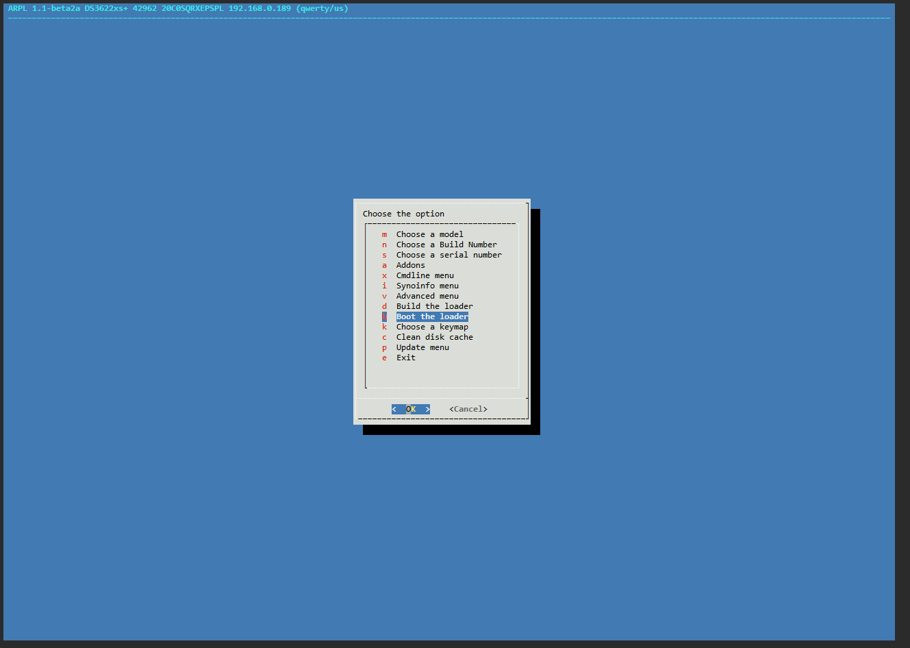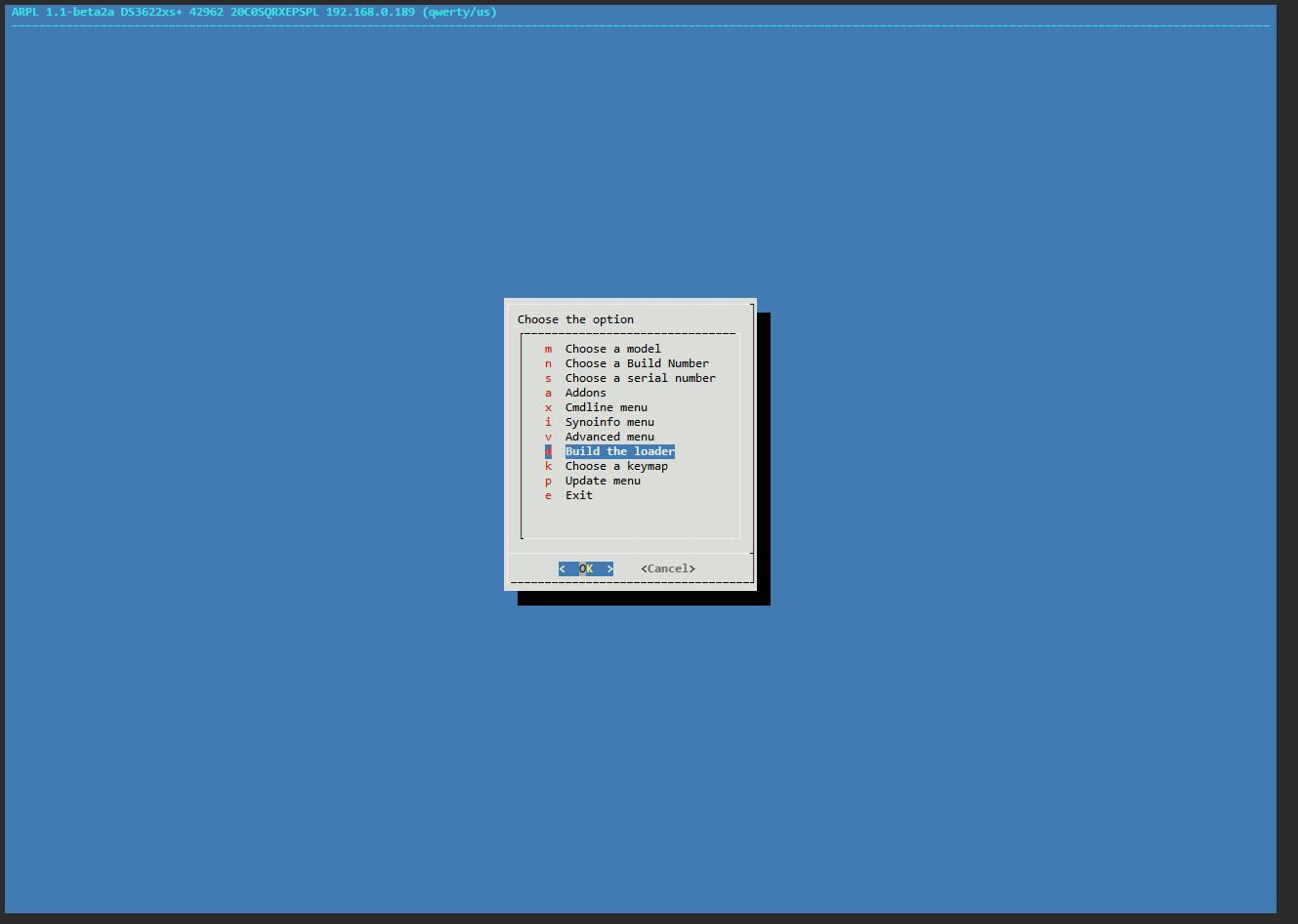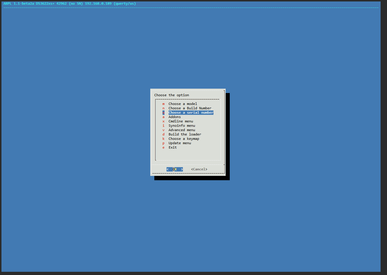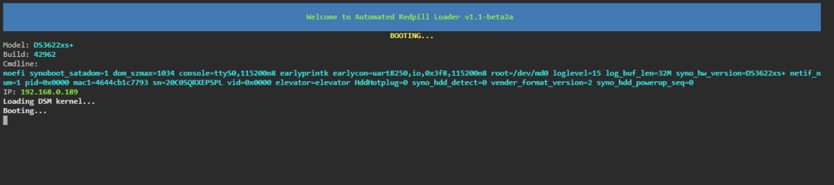 Tuỳ vào cấu hình máy mà mục model sẽ hiện ra các model tương thích. Mình chọn DS3622xs+ (broadwellnk), theo hướng dẫn chọn model ở đây: https://xpenology.com/forum/topic/61634-dsm-7x-loaders-and-platforms/. Bấm Enter để tiếp tục