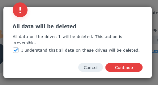 Xác nhận dữ liệu sẽ bị xoá. Bấm Continue.
