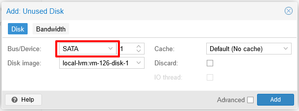 Bus/Device: chọn SATA. Bấm Add để kích hoạt.