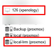Trong đó 126 là ID của máy ảo vừa tạo ở bước I. Còn local-lvm là tên của phân vùng chứa dữ liệu. Bạn có thể xem thông số này ở phần menu bên trái của Proxmox.