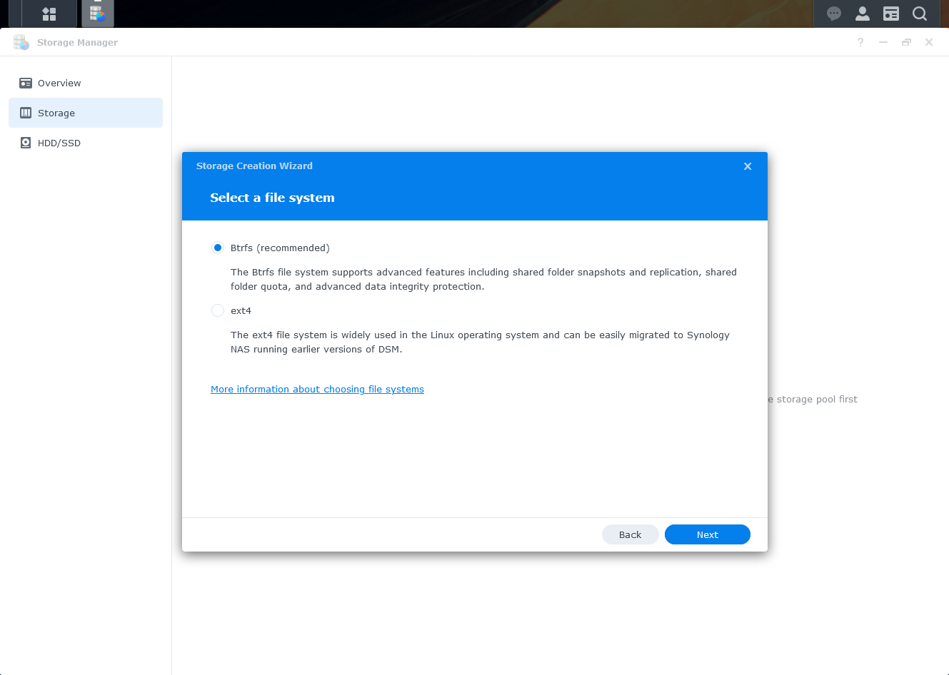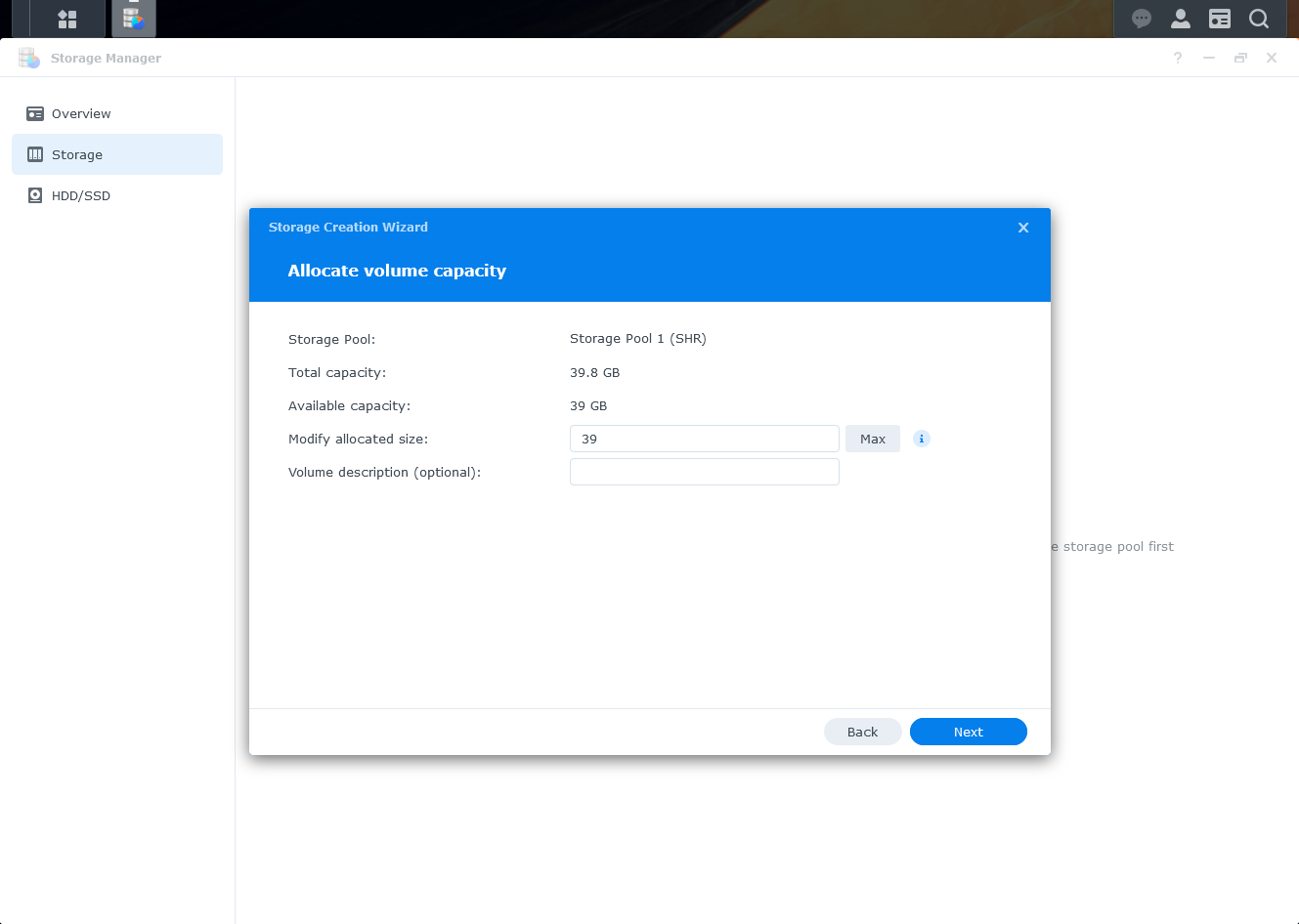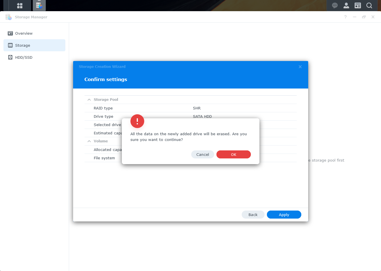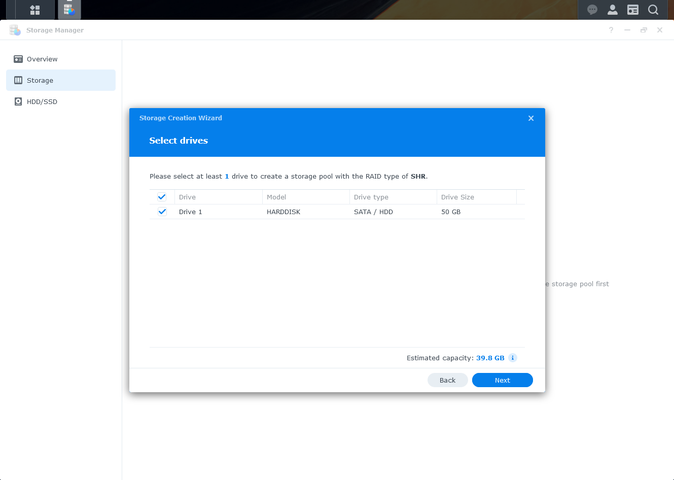 Chọn RAID Type: mình không rành sự khác nhau giữa mấy cái này, nên chọn tạm SHR. Bấm Next.