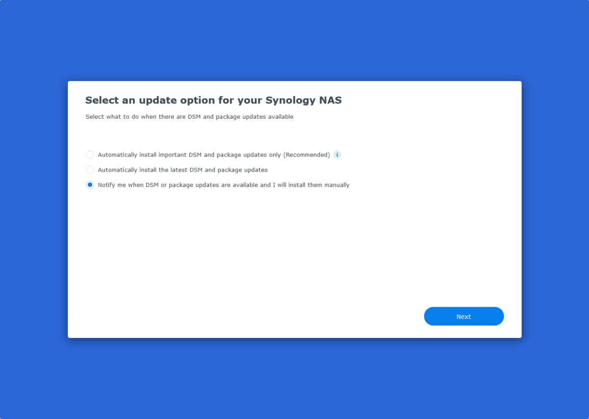Chọn “Notify me when…” để ngăn hệ thống tự động cập nhật, đề phòng biến cố không tương thích khiến Xpenology không truy cập được.