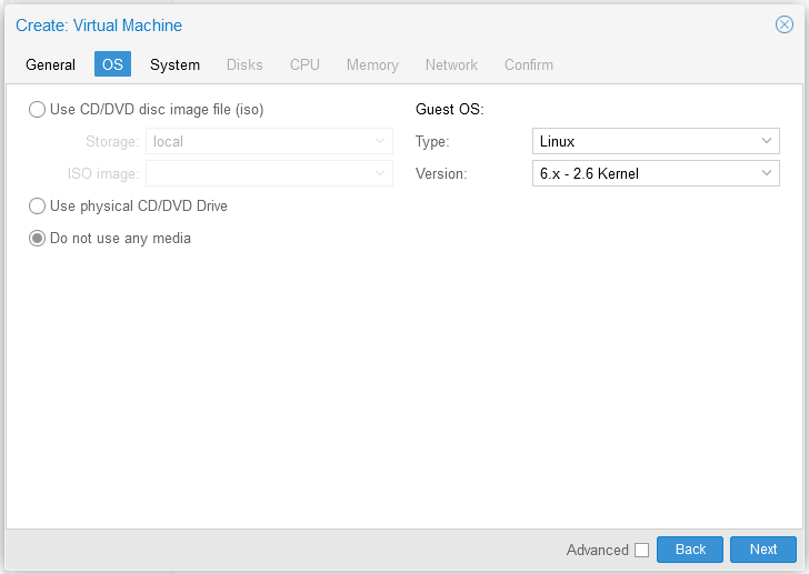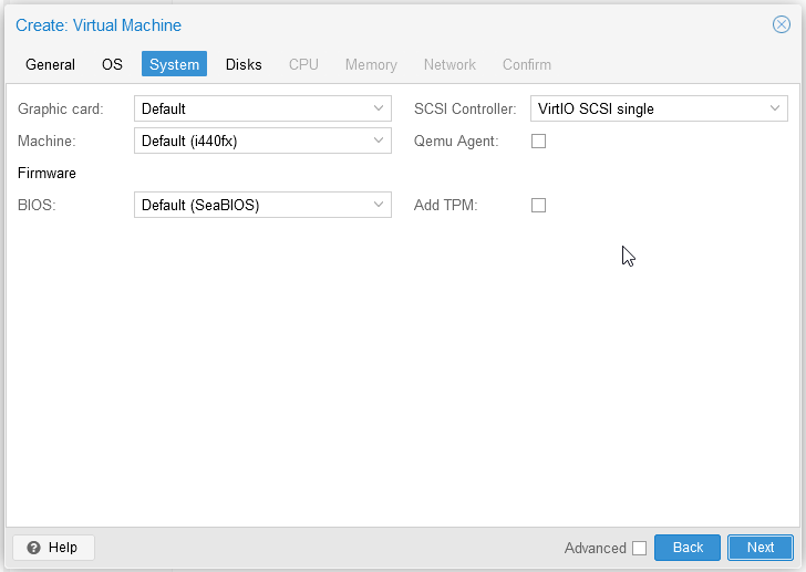 Truy cập vào Proxmox, tạo máy ảo (Create VM) với các thông số như dưới đây
