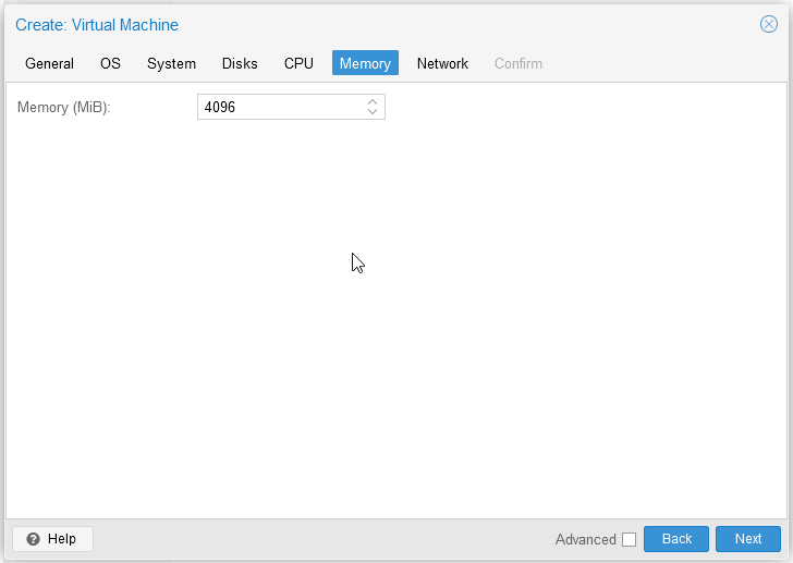 Mục Memory: bắt buộc tối thiểu 4096 MB (4 GB RAM). Bấm Next.